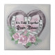 Wir reiten gemeinsam Herz Fliesen, Kleidung, T - Shirt, Geschenke von ArtMuvz Illustration. Ein Aquarellherz mit Rose und zwei Hufeisen, die mit einem Band verbunden sind. Fügen Sie Ihren Namen hinzu oder fügen Sie stattdessen Text hinzu. Passen Sie diese Kachel an, um sie einzigartig zu machen oder als personalisiertes Geschenk zu geben