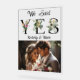 Ein elegantes Hochzeitszeichen mit individuellen Fotos, tropischen Sommerbriefen für "yes" und individualisierbaren Blume für das Ehepaar.