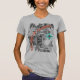 Ein futuristisches Shirt mit einem komplizierten rechnerischen / Fraktal / geometrisch / algorithmisch / kaleidoskopischen Muster, Halbmonde und Wissenschaftssymbol Der Text könnte angepasst werden. Grau, orange, türkisblau