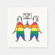 Dieses Kunstwerk enthält zwei Regenbogenfrauen mit einer Idee und einem Schild.