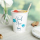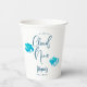 Traumhafte und elegante Babydusche-Papiertasse mit Illustration türkisblauer Wolken. Im Text steht: "Wir sind auf Wolke neun."