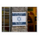 Ein handgemaltes, blau-weiß-Schild, das vor einem Geschäft in der israelischen Stadt Rosh Pina angebracht wurde. Das Zeichen hat englischsprachigen Text zu lesen, wir glauben nicht an MIRAKLES, wir ABHÄNGEN VON IHNEN" auf einer Darstellung der israelischen Flagge. Rosh Pina liegt im oberen Galiläa, am östlichen Hang des Berges Kna'an. Es gehört zu den ältesten zionistischen Siedlungen und wurde 1882 von dreißig Familien aus Rumänien gegründet, die sich für die Landwirtschaft entschieden hatten. Emmer (Triticum dicoccoides), der Vorfahren der meisten heute angebauten Weizensorten, wurde 1906 in der Nähe von Rosh Pina in freier Wildbahn gefunden.
