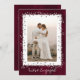 Diese moderne und einzigartige Foto-Verlobungskarte ist ideal, um Familie und Freunde zu lass wissen, dass Sie verlobt sind und laden sie zum Party ein. Senden Sie diese an Ihre Gäste mit dem weißen Kalligraphieskript 'We're Verlobt', Ihrem Foto umgeben von Silberherzen auf bordeauxrotem Hintergrund. Auf der Rückseite sind alle Ihre Party-Informationen. Einfache Eingabe (Do It Yourself) durch Bearbeiten des Textes in den Textfeldern auf der rechten Seite des Bildschirms. Auch im Postkartenformat erhältlich.