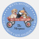 Sagen Sie allen "wir haben bewegt" mit diesem niedlichen Aufkleber mit zwei Hunden und einem Vogel in einem roten Wagen. Personalisieren Sie Ihren Namen, Ihre Adresse und Ihre Nachrichten in weißem und schwarzem Text auf blauem Hintergrund. Version 2.