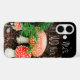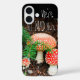 Foto einer Gruppe von roten und weißen Fliegenpilzen unter einem Kiefernbaum. Der Text oben lautet "Wir sind alle verrückt hier", eine Zeile aus der Alice im Wunderland.