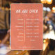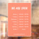 Wir sind offen Stunden Business Time White Script Fensteraufkleber