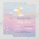 Wir sind über dem Mond, um unsere Gender-Offenbarung zu feiern! Laden Sie Ihre Lieben zu Ihrem Geschlecht offenbaren Party mit dieser rosa, blauen und lila Gradienten Einladung mit Sternen und Wolken.