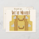 Benötigen Sie eine Ankündigung für Ihre neue Adresse? Auf dieser Postkarte finden Sie die Worte "Wir haben uns bewegt" über einer Abbildung Vintag gestreifter, tweed Koffer.