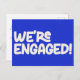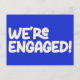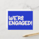 Mit dieser "We're Verlobt"-Postkarte mit verspielter weißer Typografie auf modernem blauen Hintergrund verkünden Sie Ihre Verlobung mit einer Touch Retro-Charme. Das Vintag inspirierte Design verleiht dem Ganzen ein fröhliches und nostalgisches Ambiente, während das kühne Blau eine zeitgenössische Drehung verleiht. Ideal für Paare, die eine lustige, einzigartige Art und Weise, ihre großen Neuigkeiten zu teilen, Liebe haben, ist diese auf einer preisgünstigen Postkartenoption gedruckt, die es sowohl stilvoll als auch erschwinglich macht, Ihre Ankündigung in knackiger Manier zu versenden.