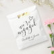 Diese stilvolle Schwarz-Weiß-Begrüßungstasche kann mit den Details Ihrer Verlobungsparty personalisiert werden. Entwickelt von Thisisnotme©