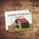 Eine lustige Art, ihnen zu sagen, dass du umgezogen bist. Diese lustige, bewegende Ankündigung auf der Postkarte zeigt einen verrosteten alten, verfallenen Barn auf dem offenen Land mit einer gebrochenen Windmühle und Pferden. Die Nachricht lautet: "Wir haben den Bauernhof gekauft und auf und bewegt" in einem hügeligen Schriftart. #oldbarn #country #Redneck