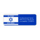 Wir stehen mit Israel Zolltext mit Israel Flagge weißen und blauen Rücksendeadressen-Aufklebern. Vollständig anpassbarer weißer Text auf blauem Hintergrund.