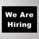 Ein modernes schwarzes Plakat für ein Schaufenster, das die Öffentlichkeit darüber informiert, dass Sie neue Mitarbeiter einstellen.