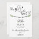 Informieren Sie Ihre Freunde und Familie, dass Sie in einer privaten Zeremonie verheiratet und laden Sie sie dann zu einem Post Hochzeitsempfang / Empfang. Passen Sie Ihre Daten an. Mit der Formulierung "Wir binden den Knoten" in einem zarten Drehbuch mit handgezeichneten grünen Blätter.