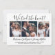 Mit dieser stilvollen, modernen "We band the knot" 4 Foto Collage Einladung laden Sie Familie und Freunde zu einem schlicht eleganten Empfang ein. Alle Formulierungen sind einfach zu personalisieren für jeden Empfang nur Feiern, einschließlich ein Post-Emotion-Party, Verleihfeier, Fortsetzung Hochzeit, 1. Jubiläum, Cocktail-Stunde oder Abendessen Party. Passen Sie es an, um die von Ihnen gewünschten Details wie z. B. Ehedatum, Kleidercode, uAwg, Website usw. einzubinden (IMAGE PLACEMENT TIP: Eine einfache Möglichkeit, ein Foto genau so zu zentrieren, wie Sie es gewollt haben, ist es, es einzuschneiden, bevor Sie es auf die Zazzle-Website hochladen.) Das moderne minimalistische Schwarz-Weiß-Design bietet vier Bilder des frisch verheirateten Paares, eine trendige handgeschriebene Schriftzeichen-Kalligraphie und eine schicke Schreibmaschinentypografie. Egal, ob Sie aufgrund der Kokospanidemie entstanden sind oder auf eine kleinere, intimere Minimonie oder Mikrohochzeit reduziert werden, das Glück nach dem Party kann immer noch beginnen. Herzlichen Glückwunsch an die Braut und Bräutigam!