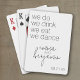Wir tun, trinken, essen, tanzen - Ein modernes und leichtes Design für eine Gastgeschenk Hochzeit. Personalisieren Sie diese Hochzeitsspielkarten mit dem Namen Braut und Bräutigam plus dem Hochzeitstag. Das einfache Schwarz-Weiß-Design koordiniert viele Hochzeitsthemen. Ein minimaler Schwarz-Weiß-Look mit einem dünnen, serifenlosen Schriftart und einem Schriftart mit kluger Schrift als Akzent. Modernes Design für eine Hochzeit oder ein Jubiläum-Party.