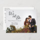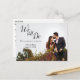Diese "Wir machen noch"-Postkarte enthält einen schwarzen Kalligraphiekopf und einen schwarzen Text auf der links Seite gerahmt mit einem vollständigen Hintergrundbild von Ihnen und Ihrem Partner. Senden Sie ein Update über Ihre Hochzeitsaufschiebung, die einfach, modern, aber elegant ist.