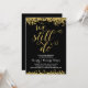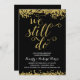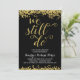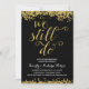 Ein goldenes Party zum 50. Hochzeitstag lädt dazu ein, die romantische Phrase "We still do" in einem schönen Kalligraphieskript mit einem Imitat Goldfolie-Look, Imitaten goldenen Konfetti auf dem oberen und unteren Rand der Karte und einem schicken schwarzen Hintergrund zu präsentieren.