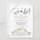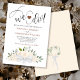 Diese romantische und elegante Hochzeitseinladung besticht durch ein rustikales, florales Aquarelldesign mit handgemalten Rose und Blume in den Schattierungen Champagner Pfirsich oder hellen Blüten mit Eukalyptus-Blätter, Belage und Grün. Ganz oben stehen die Worte: "Wir tun!", die in modernen Schriftzeichen mit einem niedlichen Herz zwischen ihnen geschrieben werden. Die Rückseite des Einladens ist eine sehr blassfarbene Farbe mit einem Blumenstrauß und Blätter mit einem Satin-Bogen verbunden.