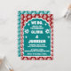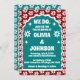 Unsere minimale, mutige Retro-Hochzeitseinladung ist perfekt für das trendige Ehepaar, das von Lieben stehend und kühn gesprochen wird. Unser Design zeichnet sich durch eine fett hellrote und aquamarine Farbkombination mit boho daisy aus. Einfache, abstrakte, gewellte Bogenformen schaffen mit "We Do" einen kühnen Look, der mutig in weißem, großen Schriftart angezeigt wird. Auf der Rückseite des Hauses befindet sich ein einfaches modernes Design mit einem fett gedruckten Monogramm und einer optionalen Website-Adresse für die Hochzeit eines Paares.