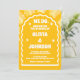 Unsere minimale, mutige Retro-Hochzeitseinladung ist perfekt für das trendige Ehepaar, das von Lieben stehend und kühn gesprochen wird. Unser Design zeichnet sich durch eine fett hellgelbe und hellgelbe Farbkombination aus. Einfache, abstrakte, gewellte Bogenformen schaffen mit "We Do" einen kühnen Look, der mutig in weißem, großen Schriftart angezeigt wird. Auf der Rückseite des Hauses befindet sich ein einfaches modernes Design mit einem fett gedruckten Monogramm und einer optionalen Website-Adresse für die Hochzeit eines Paares.