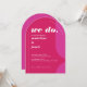 Unsere minimale Retro-Stileinladung ist perfekt für das trendige Ehepaar, das von Lieben stehend und kühn gehalten wird. Unser Design verfügt über eine kühn leuchtende Farbkombination zwischen rosa und magenta. Einfache abstrakte Bogen- und Kreisformen schaffen mit "We Do" einen kühnen Look. Dieser ist kühn in weißem, großen Schriftart dargestellt. Auf der Rückseite des Hauses befindet sich ein einfaches modernes Design mit einem fett gedruckten Monogramm und einer optionalen Website-Adresse für die Hochzeit eines Paares. Von Moodthology Papery entworfen