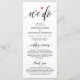 Wir tun, Elegant Modern Black Skript, Hochzeit Zeremonie Programm Karte. Es ist mit Scrollakzent entworfen, der personalisiert werden kann mit benutzerdefiniertem/personalisiertem Text für Ihr Brautparty, Zeremonie Details, Gedenkhinweise und Dankeschön-Nachricht. Wenn Sie weitere Programmkarten-Typen und -Größen suchen, durchsuchen Sie bitte unseren passenden Programmkartenabfrageabschnitt.