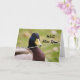 Eine blaue und graue Ente mit einem gelben Blitz mit Worten Sprichwort wir vermissen Sie eine niedliche Ente Karte.