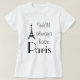 Ein weißer T - Shirt mit dem Sprichwort "Wir werden immer Paris haben" und einem Foto des Eiffelturms! Schwarze Version auch verfügbar.