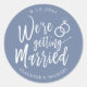Wir werden verheiratet | Taubenblauer Minimalistis Runder Aufkleber