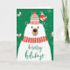 Eine niedliche Karte mit einem Eisbär auf der Vorderseite, der eine Strickkappe trägt. In der Begrüßung steht: "Ich wünsche dir ein sehr mildes Weihnachtsfest!"
