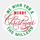 Fügen Sie dieses anpassbare Design zu Ihren Weihnachtskarten und -paketen in dieser Ferienzeit hinzu. Design enthält den Satz "Wir wünschen Ihnen ein frohes Weihnachtsfest in rot und grün. Am unteren Rand können Sie Ihren Namen, Familiennamen oder was auch immer Sie wählen, anpassen.