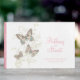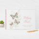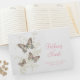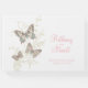 Schöne Schmetterlinge mit Tinte und Blumengrafik. Das Gästebuch in Rosa, Creme, Aqua aquamarin und braun. Personalisieren Sie mit Ihren eigenen Namen und Hochzeitsdatum. Originelle Schmetterlingseigenkunst und Grafikdesign von Sarah Trett für www.mylittleedenweddings.com