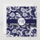 Monogram, Vintag Damask Wirbel Navy Blue Damask Hochzeitseinladung Kleinere Monogramm auf der Rückseite