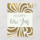 Wirbelnder Vintager japanischer abstrakter Hintergrund in den goldenen und weißen Farben - er kommt mit dem Text glücklichen neuen Jahr. Entwurf durch AlmaWad. See zusammenpassendes Porto