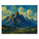 Dieses Stück erfindet die Pracht einer Bergkette durch die lebendige und emotionale Linse des Vincent van Gogh Stils. Die scharfen, zerklüfteten Gipfel steigen dramatisch in den Himmel, eingewickelt in wirbelnde Wolken, die die ruhelose Energie der natürlichen Welt widerspiegeln. Das bewegungsgefüllte Bürstenwerk erfasst sowohl die Festigkeit der Berge als auch die flüchtige, traumhafte Atmosphäre von Nebel und Wind.