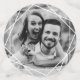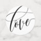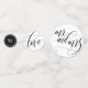 Schwarz-Weiß Tischkonfetti für eine elegante Hochzeit. Drei der Seiten enthalten Wörter, die in einem wunderschönen, Wirblen Kalligraphieskript geschrieben sind - Liebe, Beifall, mr & mrs - eines ist mit dem Monogramm personalisiert, eins mit Ihren Namen und Ihrem Hochzeitstag, und eins mit einem Foto des glücklichen Ehepaares.