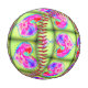 von Hand gezeichnet rosa Herzen mit Wirbel auf grünem Hintergrund