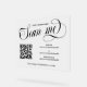 Lichtdurchlässiges, kleines Firmenzeichen für Werbezwecke mit einem gedruckten mattierten Look für den Austausch Ihrer Social Media- und Website-Adresse mit Ihren Kunden und Kunden mithilfe Ihres QR-Codes. Scannen Sie mich oben in einem Wirblen schwarzen Kalligraphieskript. Elegantes Acryl-Werbezeichen für Ihr kleines Unternehmen personalisiert mit Ihrem QR-Code und Social Media Handles und Website mit schwarzen Schriftart gegen lichtdurchlässige Weiß. Praktisches und elegantes Werbezeichen in Acryl für Ihr kleines Unternehmen.