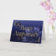 Dies ist eine Mitarbeiterkarte zum 40. Jubiläum mit dem Text 'Happy Anniversary', geschrieben in einem eleganten Schriftart mit fließenden Swashes. Der Text und die Details des Designs haben einen attraktiven Effekt-Overlay für Goldfolie. Der Hintergrund besteht aus einem mittleren bis dunkelblauen Farbverlauf, mit einer auffälligen Lilienfarben-Blume, in passenden Blautönen, in der unteren rechten Ecke. Die Anzahl der Jahre ist im oberen verlassen. BITTE BEACHTEN SIE: Der Goldfolieneffekt wird im Kunstwerk digital simuliert, für die Herstellung dieses Produktes wird keine Goldfolie verwendet. Design von NATALIE KINNEAR