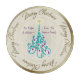 Schönes Charcuterie-Brett mit einem originalen digitalen Gemälde von Leslie Sigal Javorek von einem Wirbel türkisfarbenen Weihnachtsbaum mit violetten Ornamenten auf einem Trompe L'oeil (Trick of the eye) Hintergrund Illusion von feinkörniger Knochen-China und mehr Tiefe. 2 benutzerdefinierte Textfelder, um den Teller für ein großartiges Geschenk zu personalisieren.