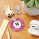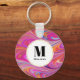 Ein Schlüsselanhänger mit einem coolen, trippy-psychedelischen Design. Rosa, Orange und blaue Farbtöne, die sich alle umkreisen. Retro Hippie Vibe.