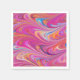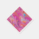Papierservietten mit einem coolen trippy-psychedelischen Design. Rosa, Orange und blaue Farbtöne, die sich alle umkreisen. Retro Hippie Vibe.