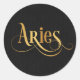 Wirbles Script Zodiac Sign Aries Gold auf schwarz Runder Aufkleber