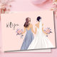 Dieses minimalistische Design zeigt eine Braut, die mit ihrer Trauzeugin oder einer ihrer Brautmädchen spaziert.