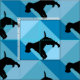 Dies ist ein lustiges Muster mit einer Wire Fox Terrier Hund-Silhouette in verschiedenen Blautönen. Die dunklen und hellen Muster bilden eine optische Illusion der Tiefe.