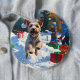 Wire Fox Terrier Running Snow mit Weihnachtshut Button