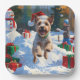 Wire Fox Terrier Running Snow mit Weihnachtshut Pappteller
