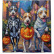 Adorable Wire Fox Terrier, die in verspielten Halloween-Kostümen gekleidet sind, tragen Kürbiseimer, während sie unter dem mondbeleuchteten Himmel tricksen oder behandeln. Dieses festliche Design hebt den wirren Mantel der Rasse, den warmen Ausdruck und die energetische Persönlichkeit hervor, die perfekt die sprichwörtliche und dennoch lustige Atmosphäre Halloween-Abends einfangen. Ein fröhliches und lebendiges Fest für Hundefreunde und Halloween-Fans.