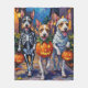 Adorable Wire Fox Terrier, die in verspielten Halloween-Kostümen gekleidet sind, tragen Kürbiseimer, während sie unter dem mondbeleuchteten Himmel tricksen oder behandeln. Dieses festliche Design hebt den wirren Mantel der Rasse, den warmen Ausdruck und die energetische Persönlichkeit hervor, die perfekt die sprichwörtliche und dennoch lustige Atmosphäre Halloween-Abends einfangen. Ein fröhliches und lebendiges Fest für Hundefreunde und Halloween-Fans.